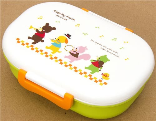 - with click lock, with 2 bears, dog, squirrel and chick, with text "The concert will start soon. Listen to our music."