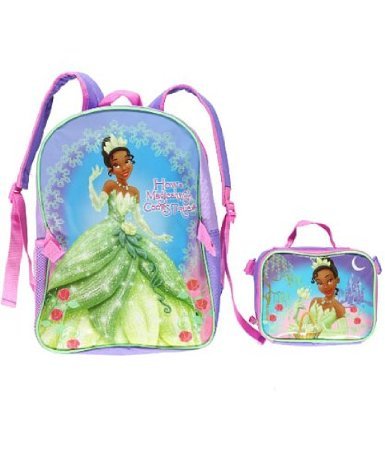 Disney Princess "True Wish" 16 Inch School Backpack with Detachable Lunchbox.Pack your little one up for class with this enchanting Disney Princess backpack! The spacious main compartment, mesh water bottle pockets, and adjustable padded straps are perfect for carrying whatever she might need. The detachable lunchbox hangs conveniently on the front of the pack. Both backpack and lunchbox have glittery accents and plasticized "How a Magical Wish Comes True" graphics featuring Princess Tiana. Ages 3+