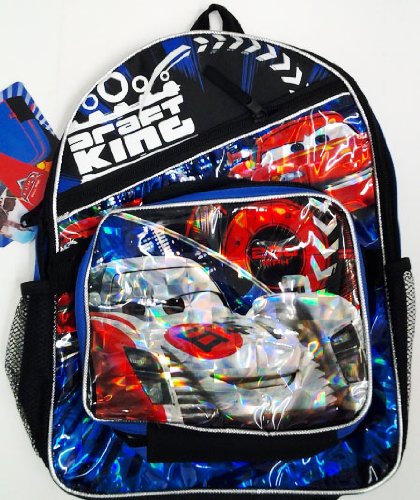 Disney Cars 16" full size backpack with detachable insulated rectangular 9" x 7.5" lunch bag. Adjustable padded straps on the backpack for comfort, one large main compartment with zipper closure, additional front zipper pocket, 2 side mesh pockets and top loop handle for eazy hanging.