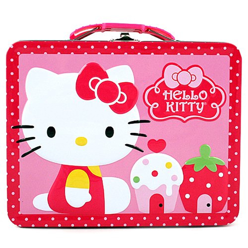 Do you have a Hello Kitty fan in the house? Why not go to school in style with this ultra cool tin lunch box. Measures approximately 7 5/8 x 6 x 3 inches. Lead safe, kids safe.