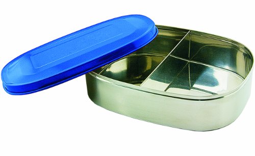 New Wave Enviro Products Tinted Stainless Steel Food Container with Divider (Water, 6.25 x 4.25 x 1.75-Inch)
