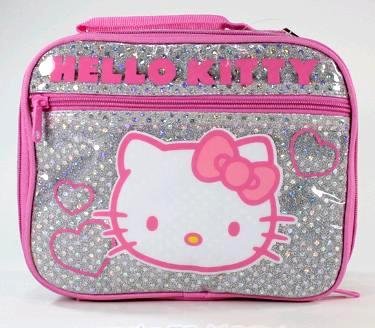 Silver Glittering Hello Kitty Face with Pink Hearts Insulated Lunchbox