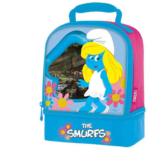 For over 100 years, Thermos has created unique products fueled by hotter, cooler and fresher thinking. This commitment continues with an expanding range of innovative, fashionable lunch kits that get your child's healthy lunch to school and back in style. Pack their lunch in Thermos each day instead of using disposables: you'll reduce waste and save your family money. Now that's fresh thinking. This Smurfs Dual Compartment Soft Lunch Kit measures 7-1/2 by 9-1/2 by 5-inch, with two separate zippered compartments for easy storage. Intended for children five years and older. Wipe clean with a damp cloth.