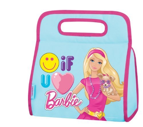 For over 100-year, Thermos has created unique products fueled by hotter, cooler and fresher thinking. This commitment continues with an expanding range of innovative, fashionable lunch kits that get your child's healthy lunch to school and back in style. Pack their lunch in Thermos each day instead of using disposables: you'll reduce waste and save your family money. Now that's fresh thinking. This Barbie lunch sack measures 9-1/2 by 7-1/2 by 3-1/2-inch, and features glitter accents. This lunch sack is 100-percent PVC free with PEVA lining and features superior quality closed cell polyethylene foam insulation. Intended for children three years and older. Wipe clean with a damp cloth, folds flat for storage.
