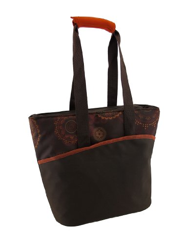 Thermos 18-can tote is the perfect picnic and food-traveling accessory. Easily holds lots of your favorite dishes and beverages. Stylish Henna design stands out from the rest. Reinforced neoprene velcro handle holds the straps together.