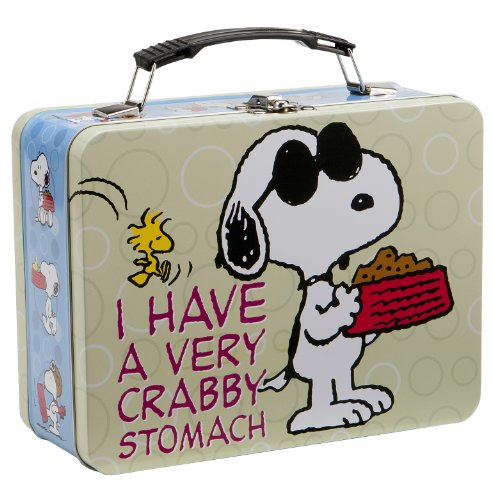 The philosophical humor, subtle social commentary, and utter lovability of these everyman characters have made Charlie Brown, Snoopy, Lucy and the gang a global phenomenon. Peanuts is considered one of the most popular and influential comic strips of all time. Today, Peanuts runs in syndication in over 2,600 newspapers, with a readership of 355 million in 75 countries and 21 languages. Peanuts products include merchandise, gifts and memorabilia featuring timeless images on mugs, lunch boxes, clocks and more. Peanuts Large Tin Tote is great for storing and toting lunches, snacks, supplies, music and gear. It has a collapsible plastic handle and metal latch closure to keep contents secure. The 9 by 3.5 by 7.5-inch box features a classic and colorful image of Snoopy and Woodstock and is the perfect gift for all Peanuts fans.